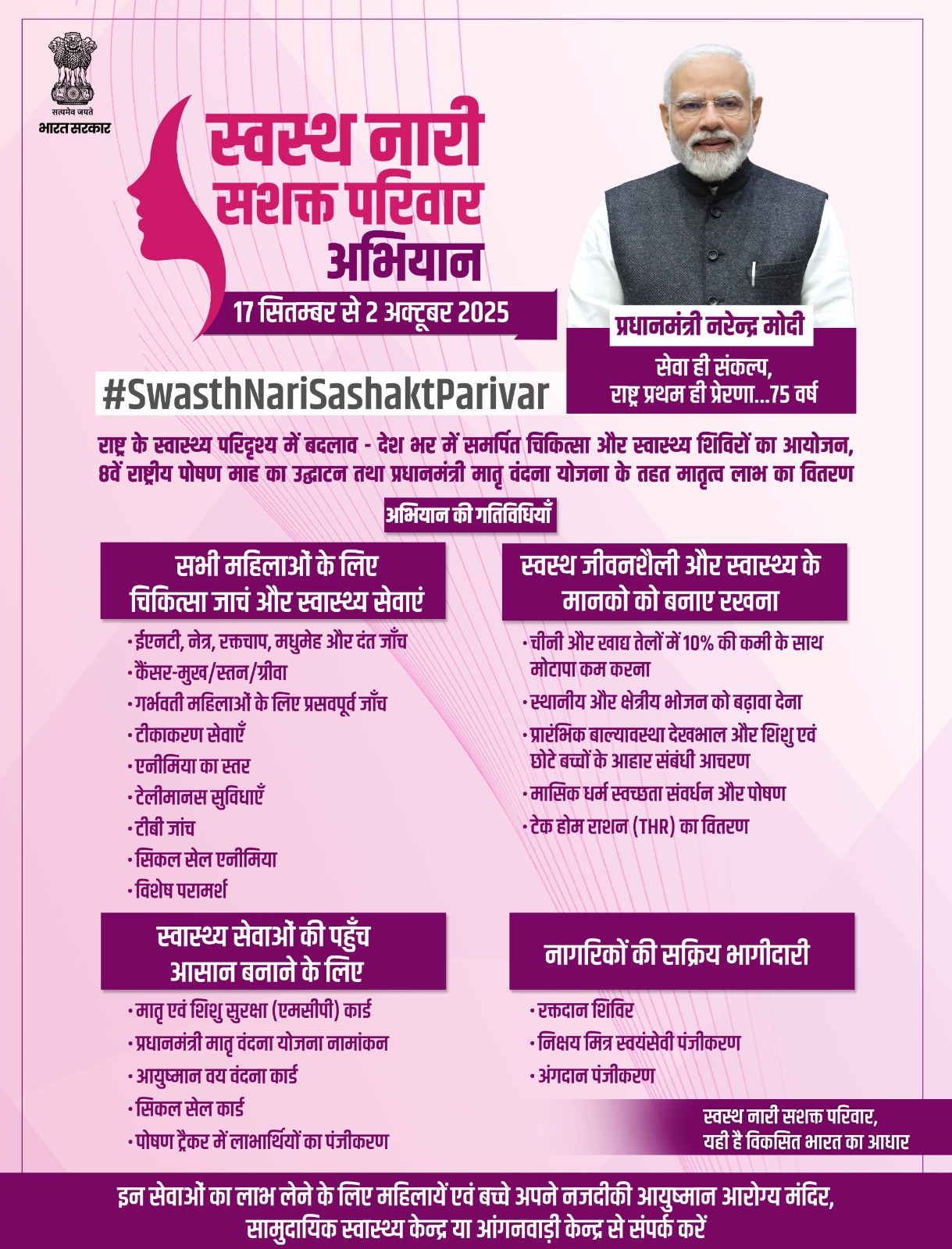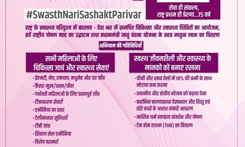 बैठक की अध्यक्षता मुख्य चिकित्सा एवं स्वास्थ्य अधिकारी डॉ.शीला साहा ने की, उन्होंने कहा कि यह केवल स्वास्थ्य विभाग का कार्यक्रम नहीं है, बल्कि महिला स्वास्थ्य, स्वच्छता, पोषण और परिवार सशक्तिकरण की दिशा में सामूहिक प्रयास का संकल्प है। उन्होंने सभी विभागों, स्व-सहायता समूहों, सामाजिक संगठनों और युवाओं से इस अभियान में सक्रिय भागीदारी का आह्वान किया। उन्होंने बताया कि स्वस्थ नारी, सशक्त परिवार अभियान अंतर्गत स्कूलों में रंगोली, क्विज, पेंटिंग प्रतियोगिता एवं हेल्थ कैम्प आयोजित किए जाएंगे। महिला एवं बाल विकास विभाग द्वारा छूटी हुई एएनसी महिलाओं का पंजीयन, बच्चों का शत-प्रतिशत टीकाकरण व संस्थागत प्रसव बढ़ाने और आदिवासी क्षेत्रों एवं छात्रावासों में विशेष स्वास्थ्य शिविर आदि आयोजित किए जाएंगे।