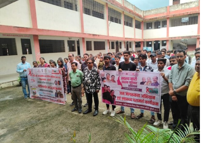 एड्स जन-जागरूकता अभियान का सफल आयोजन शासकीय नवीन महाविद्यालय फास्टरपुर सेतगंगा में राष्ट्रीय सेवा योजना, रेड रिबन क्लब एवं जिला एड्स नियंत्रण समिति, स्वास्थ्य एवं परिवार कल्याण विभाग मुंगेली के संयुक्त तत्वाधान में दिनांक 27 सितंबर 2025 को किया गया। कार्यक्रम का शुभारंभ महाविद्यालय के प्राचार्य महोदय के स्वागत भाषण से हुआ। उन्होंने छात्र-छात्राओं को एड्स के संक्रमण, उसके दुष्परिणामों एवं बचाव के उपायों से अवगत कराया। कार्यक्रम के दौरान छात्र-छात्राओं ने भाषण के माध्यम से जागरूकता का संदेश दिया। सुरक्षित व्यवहार अपनाने और भ्रांतियों को दूर करने पर विशेष बल दिया गया। स्लाइड प्रजेंटेशन और पुस्तिकाओं के माध्यम से भी जानकारी प्रदान की गई।इस अवसर पर जिला एड्स नियंत्रण समिति के विशेषज्ञ चिकित्सक डॉ. बसंत सर, काउंसलर सुरेंद्र लहरे एवं उनकी टीम ने एड्स के लक्षण, फैलने के कारण तथा रोकथाम के उपायों पर विस्तार से जानकारी दी। आखिर में प्रश्नोत्तर सत्र हुआ, जिसमें छात्रों ने उत्साहपूर्वक भाग लिया। रेड रिबन क्लब प्रभारी संजय कुमार बिंझवार, सहायक प्राध्यापक (वाणिज्य) ने धन्यवाद ज्ञापित किया और कहा कि ऐसे अभियान समाज में जागरूकता बढ़ाने के लिए अत्यंत आवश्यक हैं।