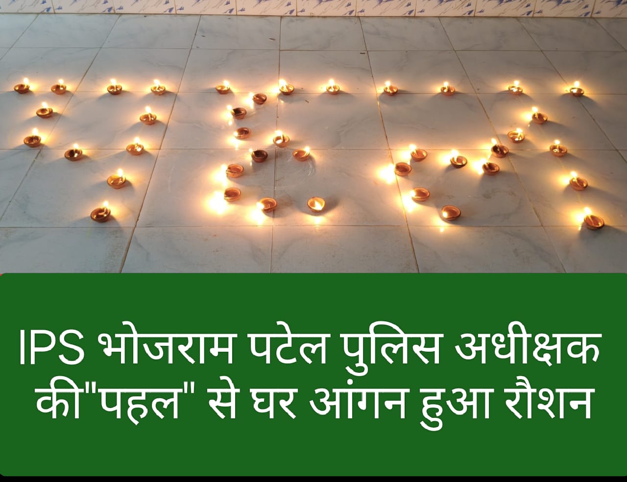 दीपावली के पावन अवसर पर मुंगेली जिला पुलिस अधीक्षक IPS भोजराम पटेल की ‘पहल’ अभियान ने नई रोशनी बिखेरी है। जिले भर के उत्साही बच्चों ने रंगोली की मनमोहक कला और दीयों की चमकदार सजावट से इस पहल को जीवंत कर दिया। ‘पहल’ के प्रेरणादायक उद्देश्यों से प्रभावित होकर, बच्चों ने अपने घरों में ‘एक दिया पहल के नाम‘ जलाया, जो अपराध, नशा और बुराइयों से दूर रहने का शक्तिशाली संदेश लेकर घर-घर पहुंचा। इस संकल्प के साथ, युवा पीढ़ी ने जीवन की विभिन्न कुरीतियों से मुक्ति का प्रण लिया, जो पूरे जिले में सकारात्मक लहर पैदा कर रहा है। ‘पहल’ अभियान की चमक मुंगेली के हर कोने में फैल रही है। बच्चे खुद एक-दूसरे को प्रेरित कर रहे हैं, ताकि समाज अपराध और बुराइयों से पूरी तरह मुक्त हो सके।