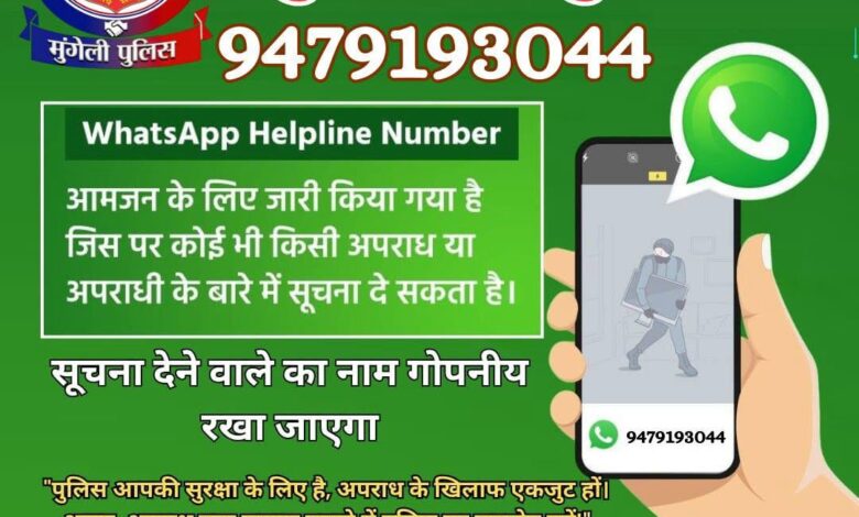 अब आम नागरिक किसी भी प्रकार की अपराध संबंधी जानकारी सीधे पुलिस के आधिकारिक व्हाट्सअप हेल्पलाइन नंबर पर भेज सकेंगे। नागरिकों की सुरक्षा सुनिश्चित करने और अपराध नियंत्रण को और अधिक प्रभावी बनाने के उद्देश्य से मुंगेली पुलिस ने एक महत्वपूर्ण पहल की है। पुलिस प्रशासन ने आश्वस्त किया है कि जानकारी देने वाले व्यक्ति की पहचान पूरी तरह गोपनीय रखी जाएगी। मुंगेली पुलिस ने बताया कि इस सुविधा का मुख्य उद्देश्य नागरिकों और पुलिस के बीच त्वरित संवाद स्थापित करना है, ताकि समय पर कार्रवाई कर शहर में शांति और सुरक्षा को मजबूत किया जा सके।