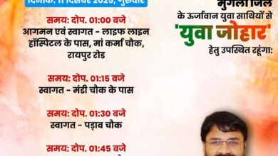 “युवा जोहार” भाजयुमो के प्रदेश अध्यक्ष राहुल योगराज ठिकरिहा का कल मुंगेली आगमन